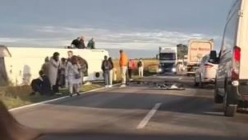 AUTOBUS SE PREVRNUO NA BOK: Na mestu nesreće policija i Hitna pomoć - saobraćaj preusmeren