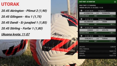 JURIMO TREĆI U NIZU! Evo "Tip" tiketa za sredu