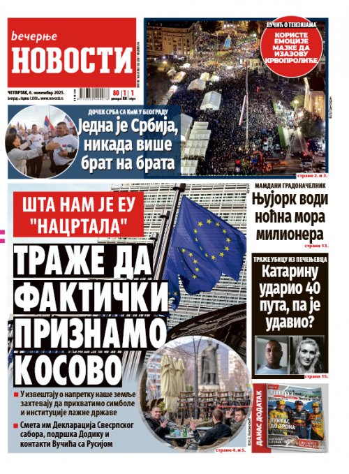 Večernje novosti - Naslovna strana - Štampano izdanje za 06.11.2025.