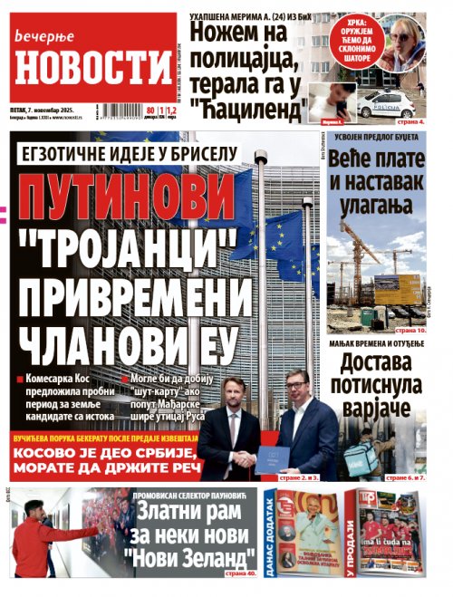 Večernje novosti - Naslovna strana - Štampano izdanje za 07.11.2025.