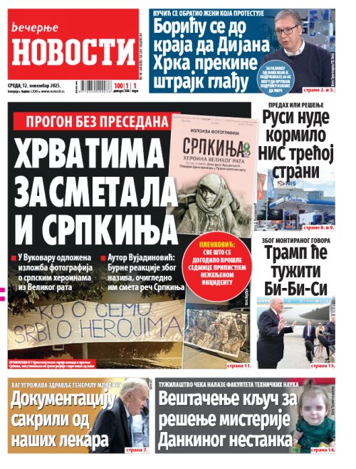 Večernje novosti - Naslovna strana - Štampano izdanje za 12.11.2025.