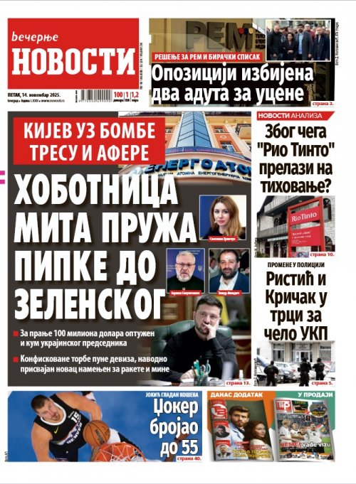 Večernje novosti - Naslovna strana - Štampano izdanje za 14.11.2025.