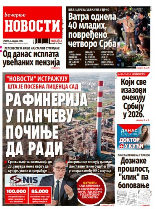 Večernje novosti - Naslovna strana - Štampano izdanje za 03.01.2026.