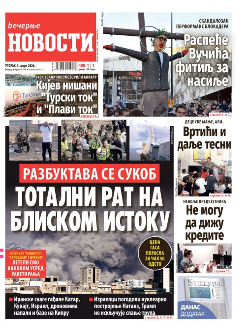 Večernje novosti - Naslovna strana - Štampano izdanje za 03.03.2026.