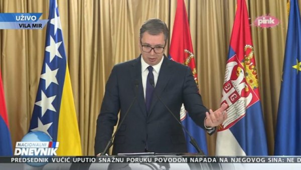 - Pod jedan, predsednik Dodik je nedvosmisleno rekao da ne postoji nikakav hir RS da pravi bilo kakve probleme, već da su njihovi potezi reakcija na to što se pravo na korišćenje šuma oduzima od RS i predaje u ruke Sarajevu. I ono što je za mene veoma važno da je on spreman da razgovara ukoliko bi se taj problem rešio. To čini mi se lišava sve one koji žele da kažu da je kriv Dodik ili RS, i da nas uvodi u nešto što je racionalan i pragmatičan pristup - rekao je Aleksandar Vučić.