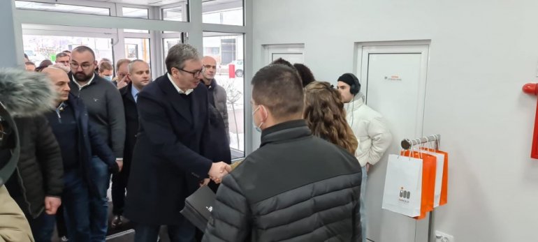- Mnogo sam srećan što sam ovo mogao da vidim, što dobro radiš, mnogo sam srećan što si se vezao za Srbiju, i mi smo mnogo srećni što vas imamo ovde - poručio je predsednik gazdi kompanije na rastanku i obećao pomoć sa subvencijama, čime je završio obilazak prve fabrike u Priboju.
