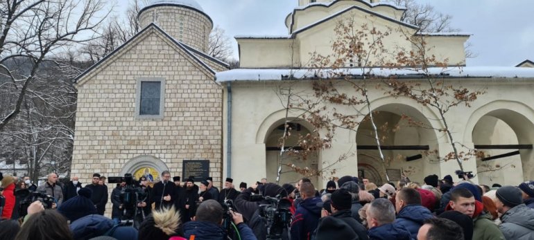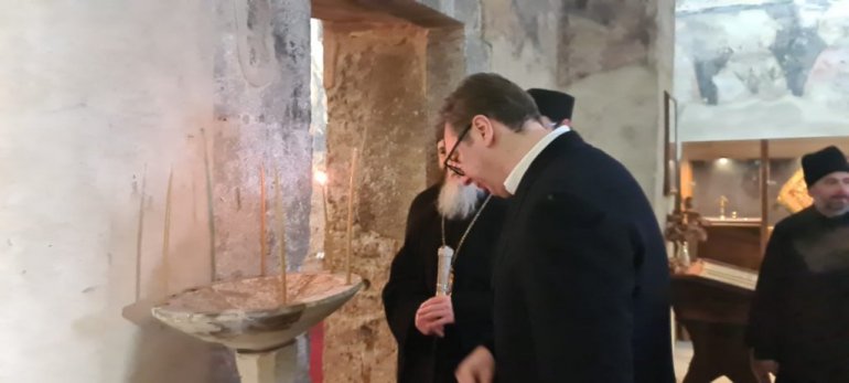 Nakon kratkog obraćanja, predsednik je krenuo u obilazak manastira.
