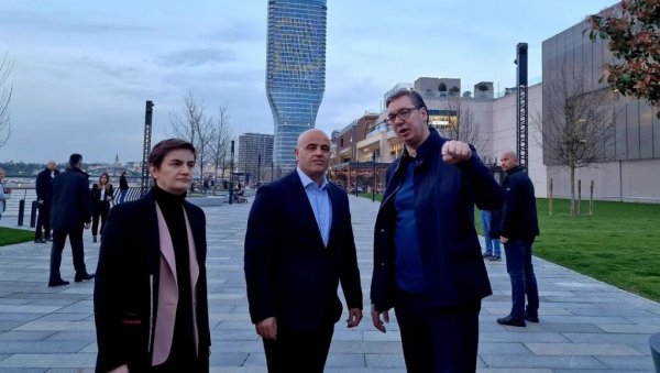 PREDSEDNIK Aleksandar Vučić prošetao je sa premijerkom Anom Brnabić i premijerom Severne Makedonije Dimitrom Kovačevskim Beogradom na vodi.