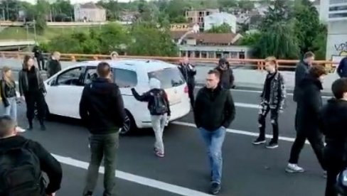 MAJKA SA ČETVORO DECE U AUTU NE MOŽE DA PROĐE PREKO MOSTA: Ovako izgleda politički protest "protiv nasilja" u Beogradu (VIDEO)