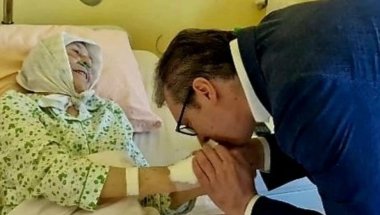 PREDSEDNIK Republike Srbije Aleksandar Vučić posetio je jutros na Institutu za ortopediju Banjica igumaniju Pećke patrijaršije mati Haritinu.