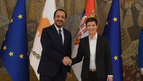 PREDSEDNICA Vlade Srbije Ana Brnabić razgovarala je danas sa predsednikom Republike Kipar Nikosom Hristodulidisom i ocenila da dve zemlje povezuju čvrsto prijateljstvo, istorijski potvrđena bliskost i solidarnost dva naroda, utemeljena na punom razumevanju i dugogodišnjoj uzajamnoj podršci.