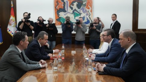 PREDSEDNIK Aleksandar Vučić započeo je današnje konsultacije o kandidatu za predsednika Vlade Srbije razgovorom sa predstavnicima liste "Ivica Dačić - premijer Srbije".