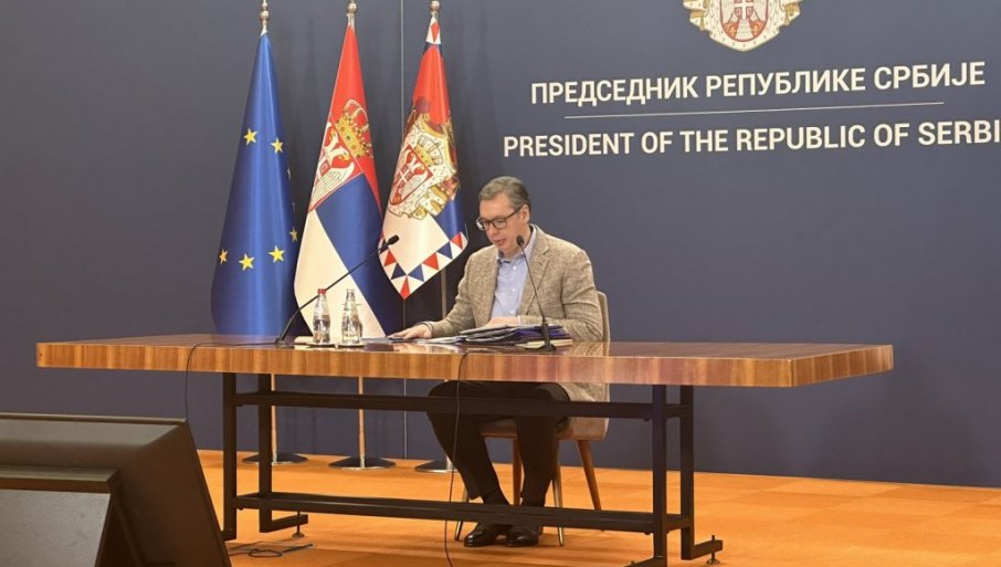 PREDSEDNIK Srbije Aleksandar Vučić se obraća javnosti iz Palate "Srbija".