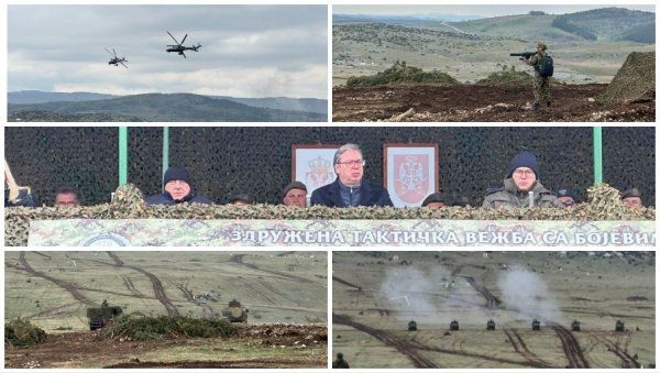 PREDSEDNIK Aleksandar Vučić prisustvovao je združenoj taktičkoj vežbi sa bojevim gađanjem Vojske Srbije „Vihor 2024“. Na vežbi je učestvovalo više od 2.000 pripadnika Vojske Srbije i oko 350 sredstava ratne tehnike.