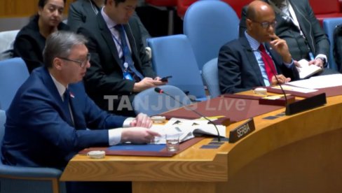 PREDSEDNIK Republike Srbije Aleksandar Vučić obratio se na sednici Saveta bezbednosti Ujedinjenih nacija gde je ukazao da je Srbija posvćena dijalogu Beograda i Prištine.