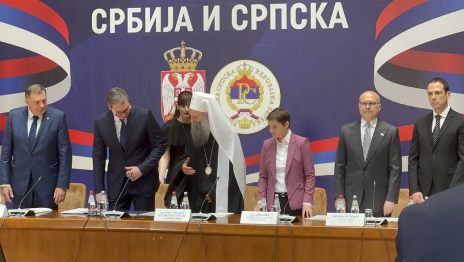Sastanak predsednika Republike Srbije i Republike Srpske, srpskog člana Predsedništva BiH, predsednika narodnih skupština Republike Srbije i Republike Srpske, predsednika vlada Republike Srbije i Republike Srpske i Nj.S. patrijarha srpskog počeo je u Palati Srbija.
