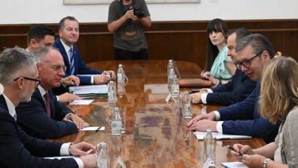 PREDSEDNIK Srbije Aleksandar Vučić izjavio je danas da je sa austrijskim ministrom unutrašnjih poslova Gerhardom Karnerom imao odličan razgovor, kao i da su razgovarali o pitanjima regionalne bezbednosti, posebno imajući u vidu da se Evropa poslednjih godina suočava sa značajnim bezbednosnim izazovima koji su pogoršani obrascima migracija izazvanim ratom i sukobima u okruženju.