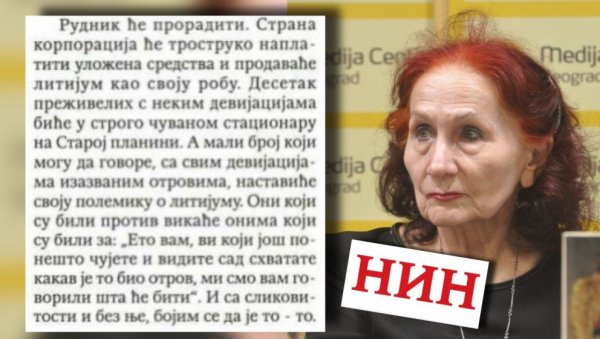 “RUDNIK ĆE PREŽIVETI SAMO DESETAK LJUDI SA DEVIJACIJAMA”: Vida Ognjenović u NIN-u iznela dosad najluđu teoriju zavere o litijumu!