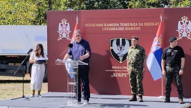 PREDSEDNIK Republike Srbije Aleksandar Vučić prisustvoao je danas polaganju kamena temeljca za izgradnju novog objekta za smeštaj i obuku pripadnika Odreda vojne policije specijalne namene "Kobre" u kasarni "Vasa Čarapić" u Beogradu.