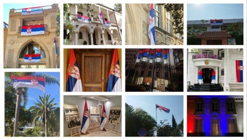 POVODOM Dana srpskoj jedinstva, boje zastave Republike Srbije krasile su ambasade širom sveta, a čestitke pristižu iz Angole, Gabona, Ekvatorijalne Gvineje, Sao Tome i Principe, Bugarske, Makedonije, Maroka, Belgije, Francuske i Azerbejdžana.
