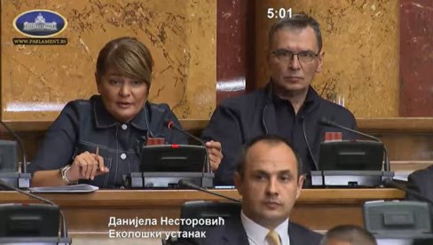 Ana Brnabić više puta je prekidala Danijelu Nestorović i opominjala poslanike, ali na zahtev Nestorovićeve više je neće prekidati, te se došlo do bizarne situacije da obrazlaganje predloga zakona opozicije ometa opozicija.