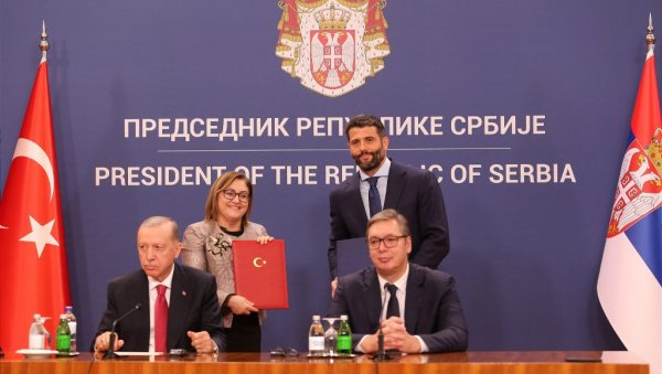 Državna delegacija republike Turske od juče je u poseti Srbiji, a dva predsednika, Aleksandar Vučić i Redžep Tajip Erdogan prisustvovali su danas u palati Srbija svečanoj ceremoniji potpisivanja bilateralnih dokumenata o saradnji između dve zemlje.