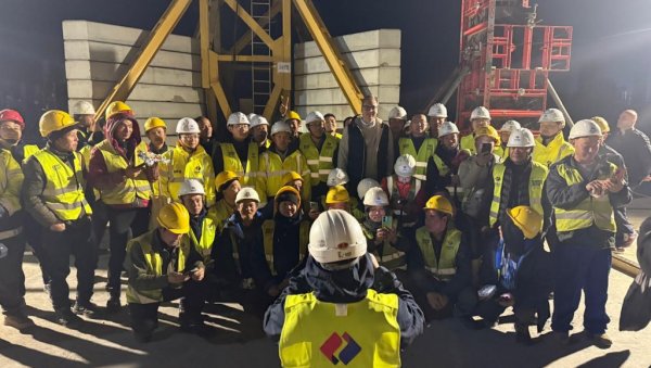 PREDSEDNIK Srbije Aleksandar Vučić stigao je na gradilište EKSPO zajedno sa ministrom finansija Sinišom Malim, gde je obišao radnike koji neumorno rade po velikoj hladnoći.