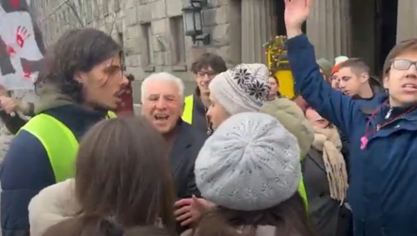 Demonstranti su pokušali i da isprovociraju Anđelkovića na sukob, ali im je on rekao da ne foliraju, te da on ima osmoro unučadi.