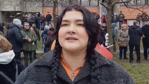 MEĐU velikim brojem okupljenih građana u Sremskoj Mitrovici je i Ivana koja je na veliki miting došla sa decom.