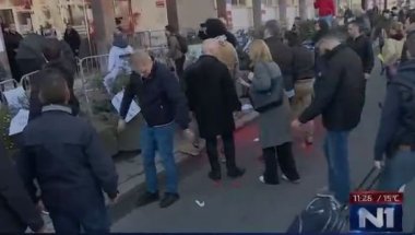 Slomljen mikrofon, sevele pesnice, a onda prava divljaština - novinarka Branka Lazić je polivena crvenom farbom. Nasilje opozicije eskaliralo je do fizičkih sukoba, dok su obezbeđenje i novinari pokušavali da se odbrane od napada.