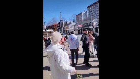 Kako se može videti na video-snimku, jedan muškarac koji je bio sa suprugom i malim detetom pretio je i vređao članove SNS, a zatim i krenup da se fizički obračuna i tom prilikom je demolirao štand.