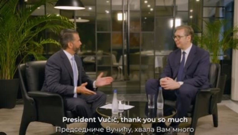- Ako se čvrsto držite svojih ubeđenja, niko ne može da vam naudi. Pogledajte kompletan intervju sutra u 18 časova po istočnom vremenu (po srednjoevropskom vremenu u 23 časa) u podkastu „Triggered” Donalda Trampa Mlađeg. Ekskluzivno na platformi Rumble - napisao je Vučić.
