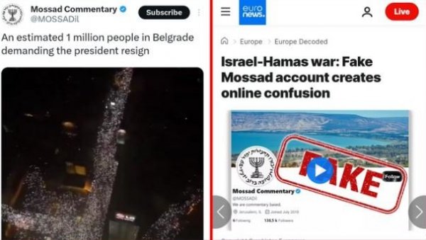 Izvor koji su koristili je X nalog "Mossad Commentary" sa zvaničnim logom izraelske obaveštajne službe Mosad i plavom oznakom verifikacije.