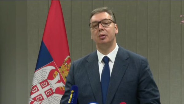 PREDSEDNIK Srbije Aleksandar Vučić obraća se iz Brisela nakon radne večere sa predsednikom Evropskog saveta Antoniom Košom i predsednicom Evropske komisije Ursulom fon der Lajen.