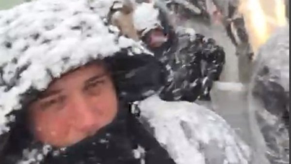 Probijaju se kroz snežnu vejavicu ali ne odustaju od svoje namere da stignu na skup u Beograd.