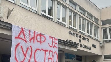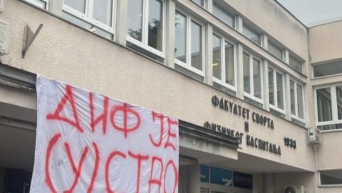 Blokaderi i opozicija okupili su se ispred Fakulteta sporta i fizičkog vaspitanja (DIF) u Novom Sadu, nisu dozvolili dekanu tog fakulteta Patriku Dridu i profesorima da uđu u zgradu fakulteta.