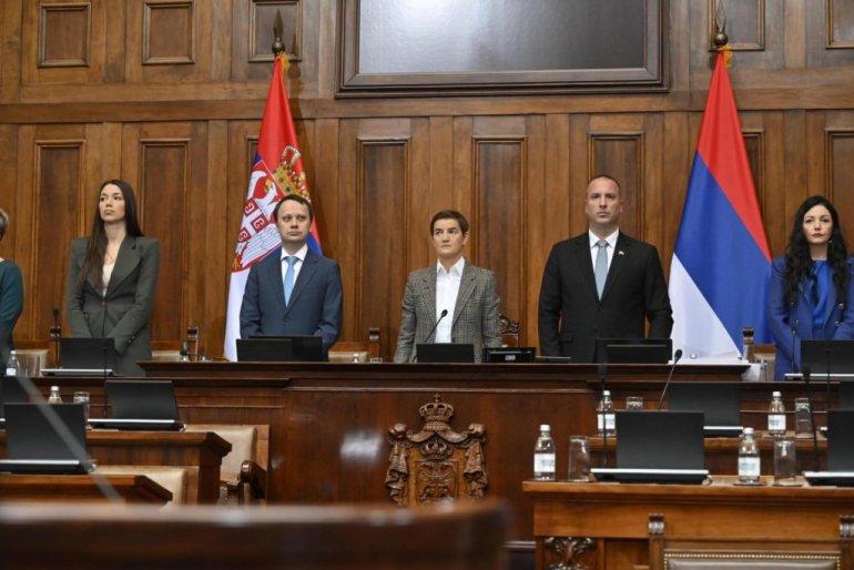 Sednica je počela intoniranjem himne "Bože pravde", a poslanike je na ulasku u Dom narodne skupštine pozdravio svečani špalir Garde Vojske Srbije, kako je predviđeno na početku svakog redovnog zasedanja.