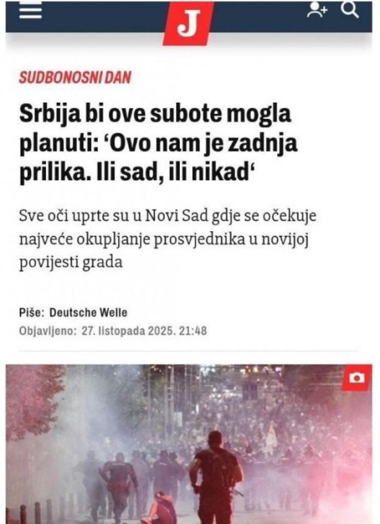 Najnoviji primer dolazi iz Jutarnjeg lista, najvećeg dnevnog lista u Hrvatskoj, koji je objavio tekst pod naslovom: „Srbija bi ove subote mogla planuti: Ovo nam je zadnja prilika. Ili sad, ili nikad“.