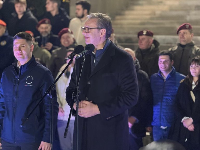 - Naše je da se prema njima nikad ne odnosimo onako kako su oni hteli da se odnose prema nama. Hteli su nas mrtve, ponižene, sklonjene iz zemlje. Mi njih želimo ovde u našoj zemlji, da žive sa nama, da ih saslušamo. Da razgovaramo sa njima, ali da se poštuju demokratska pravila i onaj ko dobije većinu da taj ima pravo da upravlja zemljom, a ne onaj ko misli da može da spali naše gradove, dovoljno ste spalili sve. Uništili ste sve što ste stigli. Borićemo se svi zajedno da pobedi pristojna Srbija. Niste vi čuvali ova mesta i Srbiju zbog mene, već zbog svojih roditelja, dece, nečeg što je vrednije od svakog od nas, a to je otadžbina. Srbin zna kad je otadžbina napadnuta da ustane. Zajednički moramo da sačuvamo zemlju, ta borba mora da bude politička, a ne vojnička. Srbija mora da ide ubrzano napred i zato verujem da će naredna godina biti možda najbolja u istoriji Srbije, kad ćemo da imamo najveće penzije, obezbedimo najveći rast Srbije. Nastavićemo da radimo i da gradimo! - kazao je on.
