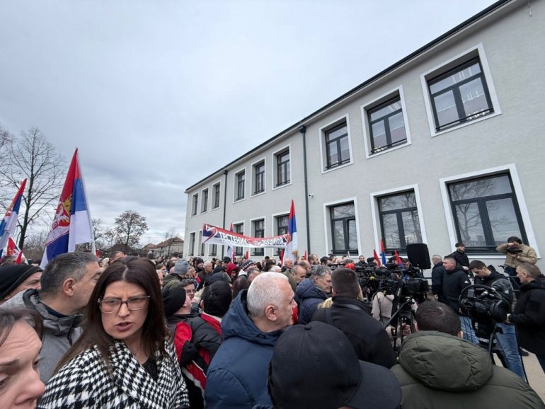 Ispred škole su se građani okupili zajedno sa učenicima.