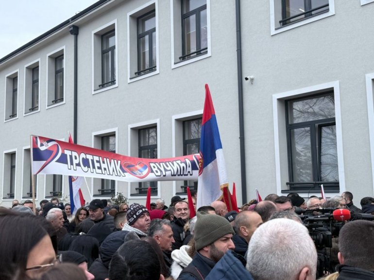 U VELIKOJ Drenovi kod Trstenika otvara se rekonstruisana OŠ "Dobrica Ćosić", a otvaranju prisustvuje predsednik Aleksandar Vučić. Narod se ispred škole okupio u velikom broju, kako bi dočekao predsednika Vučića.