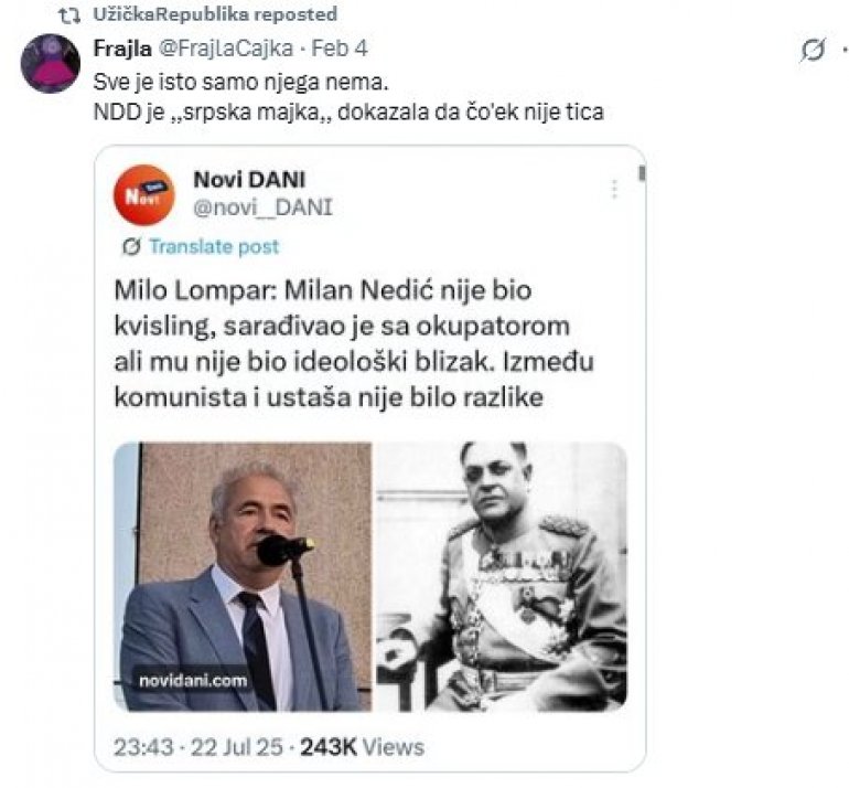 Ješić je napao Lompara tako što je retvitovao više objava u kojima je Lompar diretkno na udaru.
