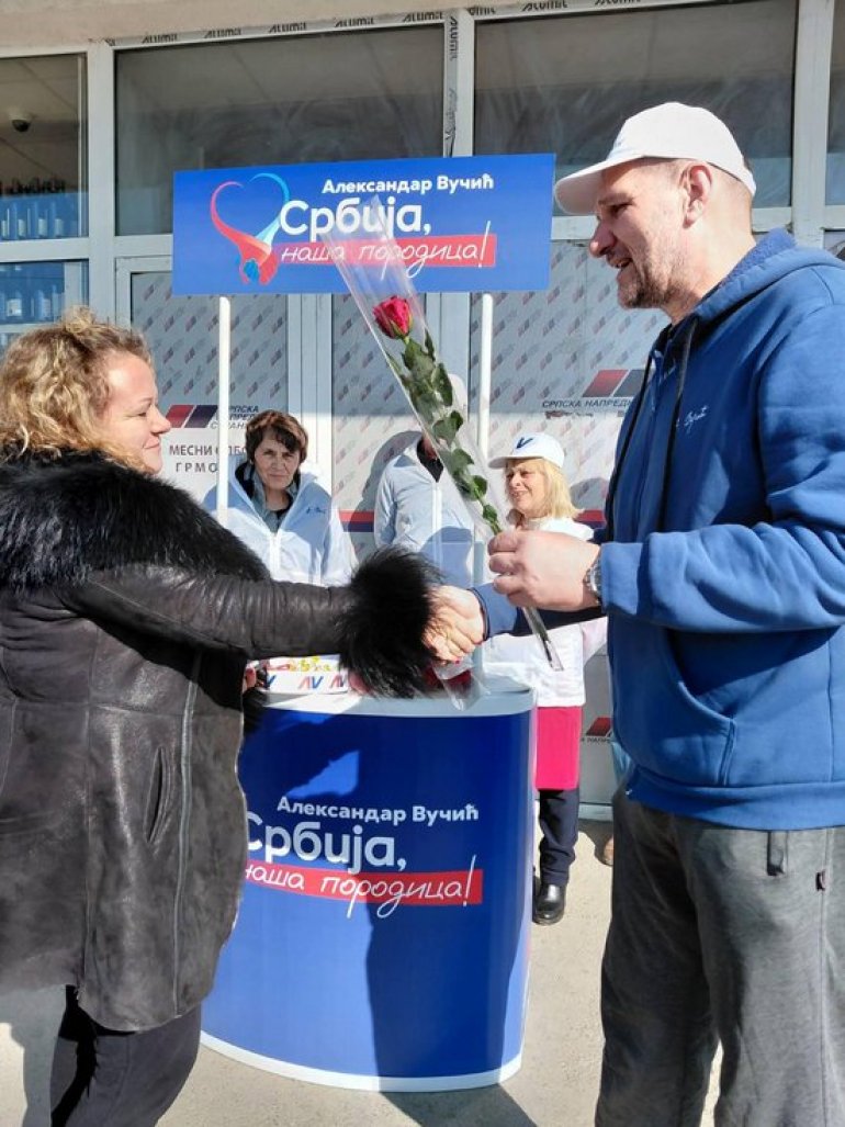 SNS štandovi prepuni su širom Beograda i Obrenovca, veliki broj ljudi izašao je na ulice da čestita sugrađankama 8. mart i da im podeli cveće, jer žene su najozbiljniji i najodgovorniji deo drušrva kako to stalno ponavlja Aleksandar Vučić.