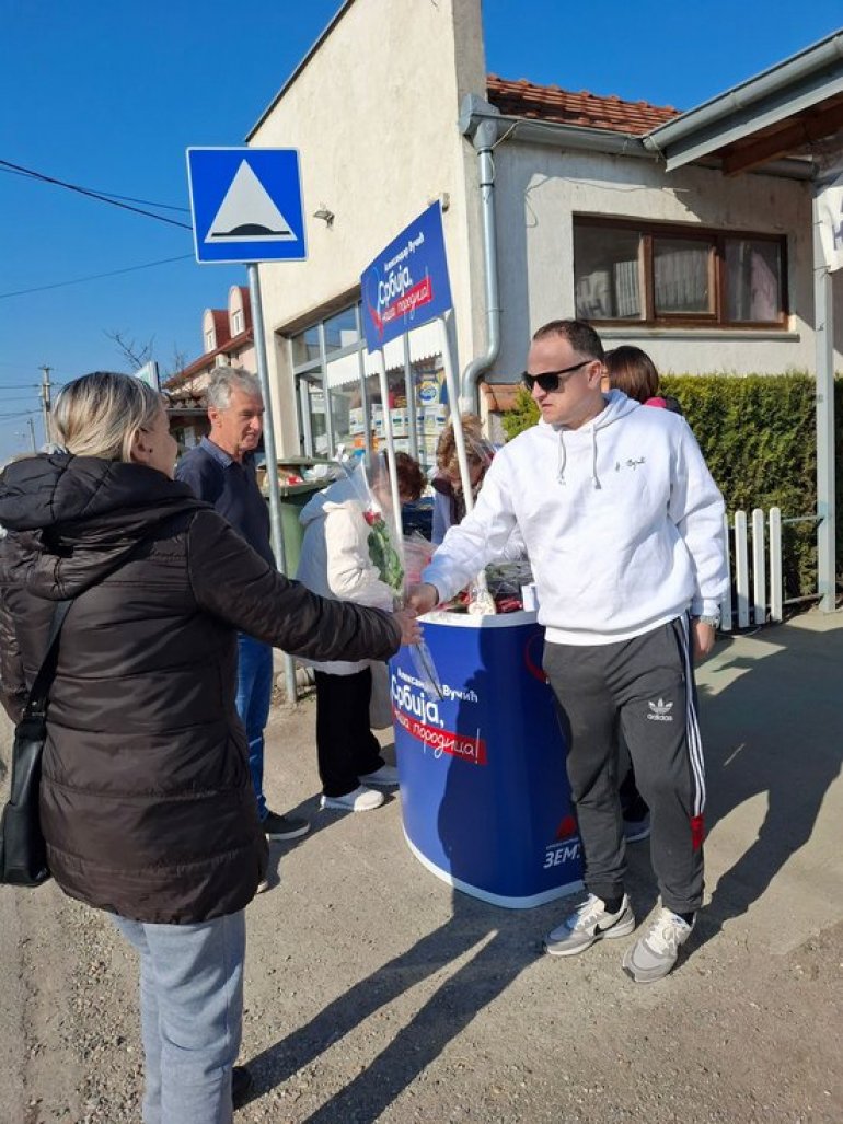 - Okupili smo se danas ovde u Barajevskom naselju Meljak da u ime SNS i našeg predsednika Aleksandra Vučića poželimo sretan 8. mart svim našim sugrađankama, svim našim damama, jer bez njih ne bi bilo ni nas. Želimo im mnogo sreće, zdravlja i uspeha u životu.