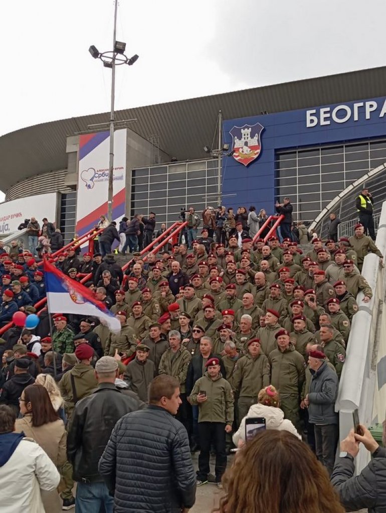 ISPRED Beogradske arene u kojoj se danas održava veliki miting SNS su i naši veterani.