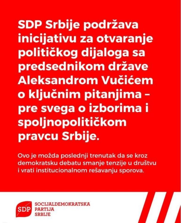SDP SRBIJE: Podržavamo inicijativu za otvaranje političkog dijaloga sa predsednikom Vučićem