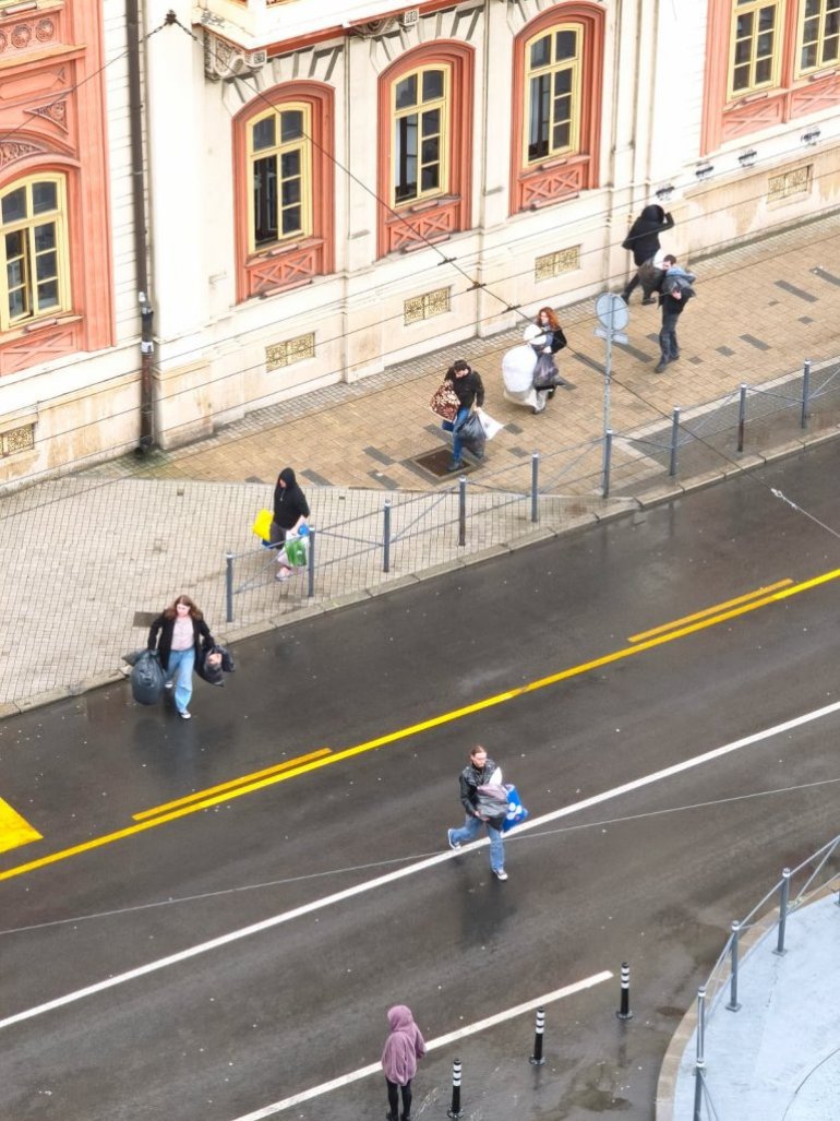 OD ranih jutarnjih časova na Studentskom trgu u Beogradu primećena je grupa mlađih lica, koja nose velike, prepune plastične kese i druge stvari, iznose ih zgrade Rektorata Univerziteta u Beogradu i ubacuju ih kamion parkiran preko puta.