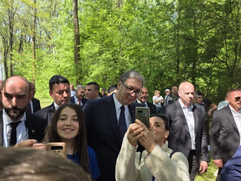 Dolazak predsednika Vučića izazvao je veliko interesovanje najmlađih, koji su zamolili da se fotografišu sa njim.