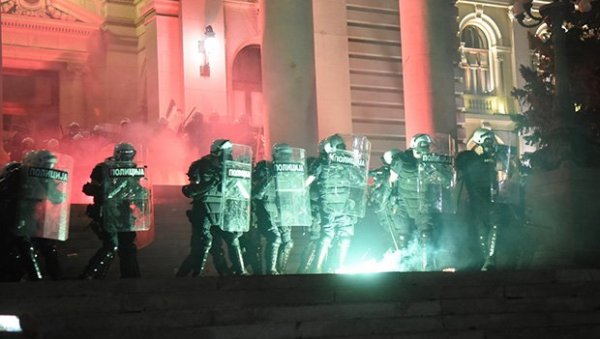 DEMONSTRANTI su se međusobno sukobili što je rezultiralo ubadanjem jednog od njih, a pokušan je upad i u Skupštinu Srbije.