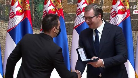 - Njihova imena će biti upisana u večnoj knjizi zahvalnosti. Dragi laureati hvala vam, vi ćete na svakom mestu biti primer dobre i pristojne Srbije. Vi ste dokazali ono što je Čerčil govorio: Da su velika dela jednostavna i da staju u nekoliko reči, sloboda, čast, milost, ljubav i nada - kazao je predsednik.